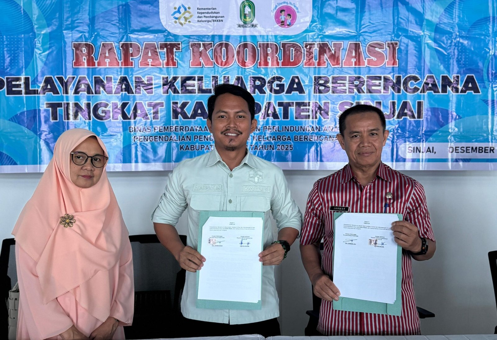 SINJAI, Jendela Satu— Kepala Dinas Kesehatan Kabupaten Sinjai, dr. Emmy Kartahara Malik, MARS, menghadiri kegiatan Penandatanganan Nota Kesepahaman (MoU) antara Dinas Pemberdayaan Perempuan, Perlindungan Anak, Pengendalian Penduduk dan KB (DP3AP2KB) bersama Dinas Kesehatan serta seluruh fasilitas kesehatan yang telah teregistrasi dalam Sistem Informasi BKKBN.