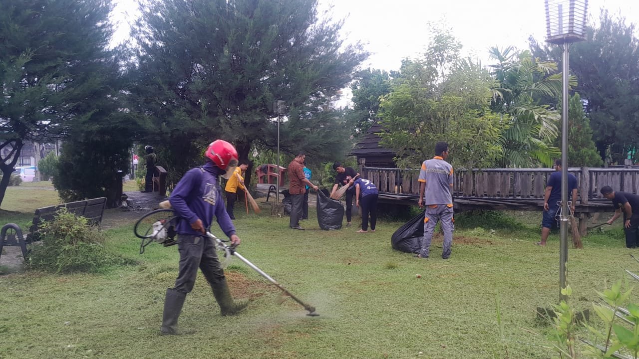 Pembersihan taman tersebut dibersamai oleh rekan dari Dinas Lingkungan Hidup dan Kehutanan (DLHK).