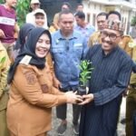 SINJAI, Jendela Satu— Bupati Sinjai, Hj. Ratnawati Arif, menyerahkan bibit di kompleks perumahan warga. Tepatnya di Perumahan Saocitra Biringere Permai, Kelurahan Biringere,