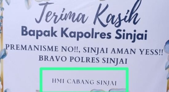 SINJAI, Jendela Satu— Polres Sinjai diduga catut nama Himpunan Mahasiswa Islam (HMI) Cabang Sinjai dalam spanduk ucapan. Spanduk yang bertuliskan “Terima kasih