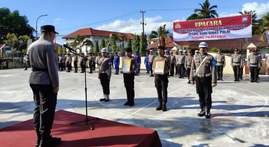 SINJAI, Jendela Satu— Kepolisian Resor Sinjai menggelar Upacara Pemberhentian Tidak Dengan Hormat (PTDH) dari kedinasan Polri terhadap dua orang personil Polres Sinjai