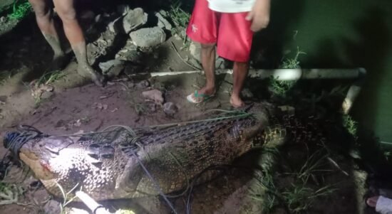 SINJAI, Jendela Satu— Seekor buaya berukuran besar ditangkap warga di Sinjai, Sulawesi Selatan (Sulsel), Senin (14/12/2025). Tepatnya di Sungai Baringeng, Desa Tongke-Tongke,