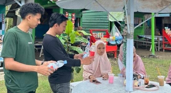 SINJAI, Jendela Satu— Ketua Pemuda Muhammadiyah Kecamatan Sinjai Timur, Musrafil melakukan edukasi kepada wisatawan yang berkunjung di Pantai Marana Dusun Marana Desa