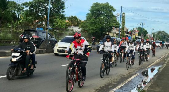 MAKASSAR, Jendela Satu— Raut wajah lelah tergambar jelas di wajah pesepeda yang tergabung dalam Gowes Bareng (Gobar) Satya Harina Tama Cycling Club