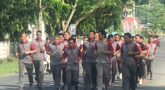 SINJAI, Jendela Satu— Personel Polres Sinjai melaksanakan kegiatan olahraga bersama. Kegiatan ini dipimpin oleh Wakapolres Sinjai Kompol Tamar, yang memimpin rute jalan