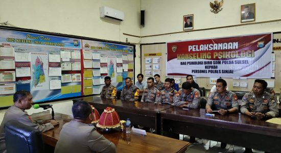 SINJAI, Jendela Satu— Tim Konseling Bagian Psikologi Biro Sumber Daya Manusia (SDM) Polda Sulsel menggelar Konseling bagi personel Polres Sinjai dan Polsek